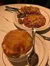 Amazing apps, lobster bisque with puff pastry topping was rich and filled with lobster chunks while the steak tartare was so generous it should be considered an entree portion instead of an app.