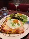 Three of us for lunch, taking advantage of the mutually convenient - for those returning to work in Chicago's Loop, this could be a place to hang at mid-day. Not really a French bistro - rather, an American sports bar without the television sets, with a limited choice of bistro classics (croque Madame, moules, quite an excellent onion soup) along with a better than average burger and various salads. And, the day we were there, fully occupied, to the point of stress on the responsiveness of the servers, in a hardwood interior that made it blazingly noisy. Reasonably priced, against the upward trend in the post-Covid era. In short - a worthy effort, and a most notch or two above acceptable.