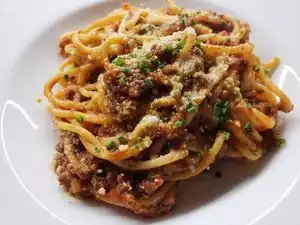 I had the veal and my wife the bolognese. Both were fantastic. We split the buffalo mozzarella and fought over the last bite. Everything was great. Atmosphere is very romantic. Service was impeccable. Sean our server was very personable and attentive. He was the best. The wine was fabulous and the right choice for our meal. Definitely will be back.