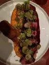 The cuisine was a combination of sensational flavors and artistic presentation on a plate. Each bite consisted of the perfect pairings and contrasts yearning for me to eat slower to savor and attempt to comprehend the complexity in each taste. So many sensations. Dishes Included: Scallop crudo , pickled long hot peppers , lemon , oilve oil Wagyu flat iron , romesco , warm farro salad , pickled cucumbers , aged beef croquette