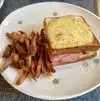 Saw it on Check Please some time ago. I am British and love steak and chips and Bistronmic was offering steak frites for lunch during restaurant week.Frites are chips/French fries, my sole reason for living (am I alone in this?). They were offering a 3 course lunch whereas some (looking at you Bar Siena) were topping out at 2. Not many choices, mind you-2 apps, 2 mains and 2 desserts. As there are two of us we managed to sample all their Restaurant Week lunch dishes. 2 lunches at $25 pp actually totaled $73 as there are taxes, fees, tips etc tacked on. Doordash delivered the goodies to our door contact-free. The oven was warmed to 400 degrees to combat the cooling process inherent in delivery. The oven gets turned off once the food goes in of course. We set upon the food like a pair of starving jackals with all the growling and barking that goes with that. A pate with a little salad and cornichons was a winning dish. It was so good I feel the need to have some by my bedside so that if I wake up in the middle of the night it is there to reassure me that life is indeed worth living. Soup was potato and leek and those two belong together in a bowl and in my stomach. Velvety smooth spoonfuls of flavor! My steak was a little hanger steak, medium rare but when reheated in the oven a medium which I like. Each bite was life affirming. Good little cut of tender meat with a nice dark sear. The fries/frites sadly were way overdone. The expected "golden brown" was " dark brown" as they had been in the fryer too long. They were certainly crispy as a result but burnt is burnt and the "truffle Parmesan" flavor suffered. I did eat every one as is my nature, but with an occasional sigh and a Gallic shrug. Madame ordered a Croque Monsieur and her only criticism was "too much cheese" (Gruyere) and indeed it overpowered the ham somewhat and was mushy in texture. But that's a matter of taste and we do love our cheese in America. We shared the two small desserts; a chocolate Diplomate with Creme Anglaise and a Fruit Financier with a delicious Mixed Berry Coulis. Both yummy! Something different for lunch and maybe we'll visit the restaurant one day to get the food straight off the stove, sample their wine and service.