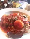 After reading the reviews and seeing it was a DDD destination we decided to give it a try. Because we were driving all day we decided to take a cab from the Sheraton on 6th. It was about a 15 min ride which was $20 with tip. The decor is funky and interesting. We got there at 630 on a Tuesday night and were seated right away. There were 3 of us. We ordered the clams appetizer which was good and very large and the rice balls. They were okay although they could have been alot creamier. For entrees one of us had the margarita bolognese. It was good although there was too much cheese melted on top of it. I had the highly recommended clam linguine. Here's where the food took a dive. There were plenty of clams but about 4 forkfuls of linguini. I love spicy foods but there must have been 2 jalapeños cut up in it making it very spicy and masking the flavor of the dish. The last person ordered the puttanesca. Again it was much too spicy. Since neither of these dishes is traditionally spicy we didn't think the heat added anything to them. Again not a bad place but definitely not "off the hook.". Also too expensive for the food we got.