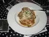 I knew we were in for a good meal when, as soon as we arrived, the waitress brought the most delicious bread I ever ate in a restaurant, a baguette with a crisp outside and a soft inside. Flavored with subtle spices, it was served warm. We both chose the same entree, the special of the day, spaghetti and meatballs. It came with a green salad with a raspberry vinaigrette. The spaghetti and meatballs were very good, but there was so much neither of us could finish.(maybe that was because we pigged out the bread while waiting.) Didn't have dessert. I must mention the wild decor: Hanging from the ceiling were all sorts of objects. An inverted umbrella, an upside-down table with things hanging from it, a bicycle, all sorts of crazy light fixtures, and more. Great fun. Service was excellent, but noise was unbearable. No reservations for fewer than six during the week, none at all on weekends.