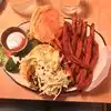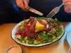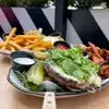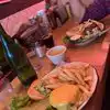 We were three persons and we really liked the hamburgers we asked for. The dishes were plentiful. Fries were nice also. The only thing we didn't like much was that the music was loud. It was good music, but too loud. Place is also nice. We would go back for sure so I recommend it!
