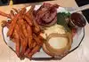 Great food! We went downstairs and ate. Food was fast and prompt prices were reasonable. With a GF bun, burger, and fries $18.00. Tremendous amount of fries and the burger tasted great. I asked for no cheese on my burger. It was perfect. Definitely would recommend.