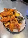 Well first of all, ask for Adrian to be your server!! He was AMAZING! He knew the menu inside and out and will guide you through. He is very well seasoned in the food industry and his recommendations were spot on! We started out with the Smoke on the Water, Mic Ultra, Nashville Hot Chicken Wings and Korean BBQ Cauliflower. Should have stopped there but also ordered the Wagyu Steakhouse Burger to split with onion rings. Needless to say, we needed "doggie" bags to go. Actually everything was truly OUTSTANDING! The burger was cooked to PERFECTION!! We haven't had a burger cooked like this in ages!!! Most chefs just don't understand the concept of medium rare...this place does! The wings and cauliflower had the best flavor and served with delicious buttermilk dill sauce. Craving them now! Truly a wonderful meal. Unfortunately too full to try one of those awesome milkshakes! Great Place, Great Vibe, Great People! Go and enjoy!!!! We will be back! And do ask for Adrian ....He is truly AWESOME!