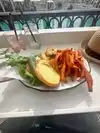 Food and customer service was great! I had the chili cheese burger with sweet potato fries. It was to die for…cook well done with just the right amount of pink. Cooked perfectly! The outside view is amazing and great for people watching.