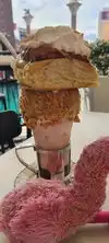 So this is the place when your in Vegas to go to. This was by far the best food I have ever had. It was 4 of us and we did the feeds 4 WAGYU sandwich. Well honestly this will really only feed 2 depending how hungry you maybe. But let me tell you that meat was AMAZING. I was upset only to get a tease. We ended up ordering some tenders and I’ll have to say even those were great. We kept seeing their signature shakes go out and decided each couple share one. Let me tell you not only do they look great they taste great. My fiancé ate the candy and the popsicle while I ate/drank the shake. We dug into the sandwich to quick so I can’t show you but I did get the picture of the shake I had. They even had awesome music playing. I wanted to ask them for a copy of what they were playing. My only down side to the place is no pictures. Like not even on their walls were pictures of what they serve. Somethings including this sandwich was new to us so to get an idea we would of ordered 2 right away. So wish they had more pictures of their items and definitely desserts. We had to attempt to Google and see what we could see until desserts started going out did we actually know what they looked like. Also if there is a wait make sure your party knows you all have 10 minutes to all get there because until all of you are there your not getting seated. After 10 minutes your table goes to the next people. And your back waiting.