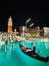 We were looking for a place to sit poutside and have a drink and a snack, and saw this great option in the VenetianHotel! Where else can you find a salad for nine dollars and a large draft beer for $11 in a high-end hotel on the Las Vegas trip? First Place that we found before this. I ordered the coconut rum slushy, which was very small, but strong and perfect for the 107° weather we are having on this trip! It was very nice to sit and eat overlooking the lagoon with the gondoliers and listen to them sing in Italian right before they unloaded their customers at the dock right in front of our table!