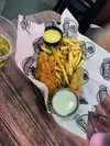 We came here on a Wednesday night - not crowded and no wait at all. Served right away; food came fast and it was hot off the grill. I got the Nashville chicken and a side of fries. My husband got the fish & chips. Big portions - we could have shared the fries. A woman came around asking to take our photo. We were skeptical but it was legit free and we got a copy of it.