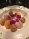 With this Blossom visit we've now eaten our way around all the Aria restaurants (and a lot of other world-class eateries in USA and Canada). We unintentionally saved one of the best for last! Let me get this out of the way- Blossom is pricey, it is very expensive on a per-dish basis. With that said, when going to Vegas and expecting a very good experience, you should always simply forget about what price. It's better that way, you can just relax and soak it in, and you have no need for guilt later. With that caveat out of the way... Reservations were made, we received a follow-up call on day of dinner to confirm and remind of no young children policy unless in a private room. Yay! Thanks! (seriously) This is an adult experience and a sublime atmosphere and I relished that opportunity to reduce one potential risk of spoiling it. We showed up on time, were greeted professionally and shown to our table which was very comfortable and private. The restaurant is arranged to facilitate privacy and intimacy with generous table spacing and differing levels. There are what appear at first glance to be framed mirrored panels between booths but are in fact clear glass panels. It's an optical illusion and aside from visual aesthetics, served to insulate and block sound from adjacent booths. Great design! The atmosphere in general is low-key, dimly-lit and very sexy. Very conducive to big-dollar deals, romance, or just peaceful and relaxing! :-D All this was great, however what quickly became apparent and carried through to the end of the night there was the service! Amazing! I just do not see how it could have been better. Water was topped off, used utensils and settings whisked away and quickly replaced, sommelier visits, and the "main person", I hate to call him a "waiter", let's say instead our "Evening Experience Manager" - Danny, was always on top of things. Top to bottom, front to back, absolutely perfect dining experience. In fact, in a very fortunate life of varied dining experiences, I feel comfortable to call this this The Best Service We Have Ever Had In Any Restaurant Anywhere. So there it is. The cocktails were delicious, I had a lychee martini, three actually, and they were superb. There is an extensive and well-curated wine and liquor list, some bottles extending deep into five-figures for those seeking a heroic end of night tab. The food was very good and very artfully presented. The spot shrimp presentation was simply a work of art, and I won't post a picture so as not to ruin the surprise! I struggle a bit to describe the flavors and will settle on this - the food was respected and not overpowered with heavy seasoning and sauces. Some would instead call it plain or simple or under-seasoned. My suggestion to the reader is it takes courage to prepare fresh, unique ingredients with a light hand and to allow the natural (light, clean) flavors to shine through. If you like a heavy hand on flavorings, this will not be your favorite experience. The dessert was, again, very well executed with a light hand and clean flavors. I want to say thank you again to all who contributed to our dining experience at Blossom! Your attention to detail is and was appreciated! We'll be back for sure, there is a lot to try on the menu and we just scratched the surface.