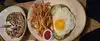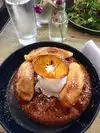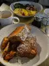 Came here as it looked good on trip advisor. Wasn’t disappointed. Service was excellent. The place is quite small and was V busy (10.30am Saturday). This didn’t affect the excellent service. We shared a long communal table (2 of us amongst groups of 2’s 3’s &4’s.). We found this added to the occasion. I had Croque Madame. It was excellent. My wife a BLTEE. She certainly enjoyed that. We both shared a portion of crispy french toast with flambe’ banana & maple syrup. That was worth the whole bill in itself. Refill coffees throughout. Top place. Guess what. We will be back in the morning!