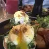 We went for breakfast, and couldn’t have been happier. It’s a small space with great atmosphere. The coffee is rich and brewed perfectly. I had scrambled eggs with shrimp, asparagus, salmon caviar and sour cream. The eggs were creamy and the caviar added a nice salty bit to the asparagus and shrimp. My husband had beef short ribs eggs Benedict. We both were immensely pleased. The portion size was perfect. Highly recommend.