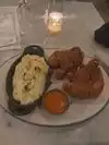 This restaurant is the coach house to the mansion on Dearborn (which used to be a fantastic Italian restaurant). Blue Door is small but packs an amazing punch. We were there Friday evening with a 5:30 reservation. Later reservations were full. Tables are close together, the volume is loud but you can hear your table mates but hardly those next to you. The dining room was full. You can see into the kitchen. It’s upscale with a friendly family feeling. Service was very good. The food! I had the fried chicken which is five pieces - enough to share as a meal. Very tender and juicy. The coating was light and nicely seasoned. Includes mashed potatoes on the bottom which were creamy and tasty. My friend had the shrimp and grits. Large shrimp with a little sausage and peppers. Creamy grits. Nice portion as well. All reasonably priced for Chicago fine dining. Love this place. Perfect for getting together with friends for a fun night.