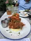 Beautiful outdoor patio! Went shortly after re-opening from covid and they did a very good job following all regulations with tables much more than 6 ft apart! Deviled eggs and fried green tomatoes were amazing apps! Would recommend the avocado toast and the omelet .
