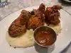 The total experience was excellent. The restaurant is off the main drag of downtown Chicago which makes outside dining nice. We sat in the patio on a very nice Saturday evening. We enjoyed a couple of adult beverages which were very good. We then ordered just about everything on the menu. We had the pierogies, Mac n cheese, collard greens, salmon croquettes, fried chicken and shrimp and grits. Ended with a slice of key lime pie. Everything was simply outstanding. Well cooked and bursting with flavors. The staff answered questions and were beyond attentive. I highly recommend this restaurant. Overall A+++