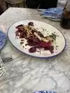 We made a reservation for noon on a Saturday. The outdoor garden was appealing and accessible ( we both use canes) but it was too cool for outdoor dining. Our table was small and somewhat loud music was playing which made conversation a little challenging. Our server, Luis , was attentive and steadied our rocking table. We ordered the fried pierogi, the beet salad, the quiche Lorraine, and an expresso. The food came quickly and was good but expensive.