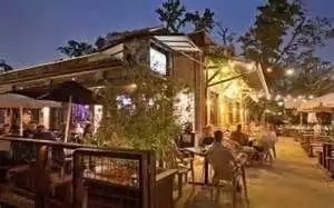 you can't fault the outdoor setting - spacious patio - attentive service - nice hummous freebie - but when we asked for extra crackers " there will be a charge" seemed peevish . good variety on menu - scallop seviche was outstanding but then - grits and shrimp were underwhelming - tasty enough - but heavy tomato sauce overwhelmed all other tastes - "was that andouille", shrimp could have been anything. And with tails, took some carving and gnawing resulting in grit-coated fingers - and where to put the tails? The pile on the table was not pretty. Steak salad of my companion - pretty enough. tasty enough but the steak was tough . Wine prices very high - likewise a cocktail at $13 seemed steep .