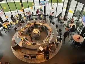 Family and friends gathered for an early dinner. Wine choices were very good with a helpful waitress getting the pairing for the adults and interesting specialty drinks for the younger guests. Farm to table choices with appetizers for the table and fishes to trade and taste. The Brussels sprout salad was quite a hit as well as the shrimp rolls. The hamburgers were “huge” and a good one to share. Too much food for dessert but they looked awesome. On the expensive side but worth the experience.
