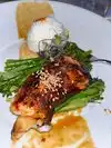I got the catch of the day grilled (usually a safe bet for me as I have celiac and a bunch of food allergies) thinking I would be given a choice of sides, but instead was told what the sides were. I am allergic to both (tomatoes and broccolini). As soon as I started to ask about substituting something else, the waiter said the chef wouldn’t do that. So, I asked that they be left off the plate just to be safe. Only then did the waiter offer rice as a substitute for both sides. I was served two clumps of sticky rice as a side for the sushi prep, I assume. The fish was ok, but I won’t be coming back. My friend’s meals were ok, so that’s why I rated a 2 instead of a 1.