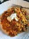 We placed an order for takeout that I and my husband picked up. We ordered samosas, cheddar naan, Karahi curry with chicken, Vindaloo with paneer, and Biryani with vegetables. The samosas were a little soggy when we got them home but otherwise good. The cheddar naan was very good and was the star of the night. The Vindaloo was so hot it was inedible. We didn’t finish it. The curry was also heavily spiced and it was unpleasant to eat. The biryani had many hard pieces of spices, including many whole peppercorns. This may be the way it is supposed to be made, but we both commented that it was like eating a brush pile. Very unpleasant. We were both surprised that the restaurant would spice these dishes so heavily when we didn’t order them that way. We have gotten good food here, but we have also gotten over-spiced food too. I think if you were eating these dishes in their very dark restaurant that you would be spitting out a lot of spices and sending back dishes. Not going back for awhile.