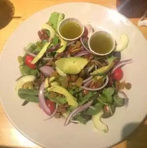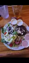 The southwest salad is wonderful it has fresh greens, avocado chicken,black bean,cherry tomatoes,roasted corn,tortilla chips,& pico. So filling and refreshing. The wait staff is always friendly and the restaurant is always very clean also indoor or outdoor eating.great place to hang out.