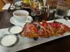 Tasty delicious portion very big one plate will b enough for two person, myst try their ginger shot, besides other thing must go early cause ull b n qu