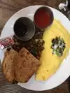 Arrived early and was seated w/about 9 other patrons as it opened on a Wednesday. Went w/the burgundy omelette, greens & wheat toast. Perfect! It was one of those situations when about 2O different things look great on the menu & you're hesitant about narrowing it down. The omelette came out quickly, was hot & didn't disappoint. I washed it down w/apple juice which was far from your can, jar or hug off a grocery store shelf! Awesome service too. Kind and attentive. I polished off the eggs and greens, shoved the plate over and dive right into blueberry pancakes. I actually slowed down to savor their sweetness. Perfectly cooked! Overall I will definitely recommend! And I wouldn't hesitate one moment to head there again.