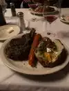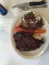 Great filet cooked just right. They actually gave you bread,giant carrot and massive loaded baked potatoe with the meal. It was quiet and an excellent meal. The key lime pie for dessert was excellent.