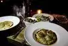 The place was recommended by friends and the four of us got different dishes. The gnocchi with wild mushrooms was the best I have ever tasted. The vegetarian risotto also. A dug leg was perfectly fried, the wine was good the service fine. Worth a visit!