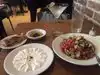 Four of us shared Hummus and Babaghanoush as appetizers. This was followed by Lamb Tagine, Turkish Braised Lamb Shank, and a Margherita Pizza......For drinks we had 2 cokes, one wine and a cocktail. I believe we also shared Yesil Salad (romaine, olives, dill, scallions, cucumbers and feta.....all was good along with the delicious bread. My rating would be a B for food, A for service and B for atmosphere. Not overly noisy and fair pricing......about $78 per couple including tip. Would return.