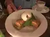 Delicious, fabulous dips, nice ambiance, open to the patio. Superb bread, fresh out of the wood-fired oven, which just kept coming. Attentive pleasant service. A real find in the neighbourhood.