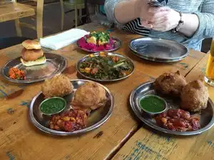 I love Indian food and found this to have a unique approach. Not all "traditional" meals, but a variety of "street food" and "small plates" allowed me to choose a variety of dishes that were more than I could eat. But I tried, because the food was absolutely delicious. Prepared fresh with fresh ingredients. Atmosphere was relaxed, and trendy, with Bollywood movies being shown on a screen. Could not beat the prices. Excellent value. Best meal all trip. Would highly recommend.