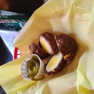 Met a group of friends here for lunch. Unique, fun setting inside, but we sat outside as it was a lovely afternoon. Service was good, even for a larger party of 12-14. I had the patty melt, which was good. Fries were OK. Prices are fair. Someone ordered the scotch eggs, said they were good. I'd eat here again, but wouldn't rush back. It was good, just not so outstanding that I would rush back.