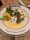 Staying at Hotel Edison, we decided to have our first night's dinner at Bond 45 so we didn't have to go outside in the 18 degree weather! Typical upper end NY Italian covers all the bases. We shared 3 items from the vegetable antipasto bar, a bit pricey for what we got. Cauliflower was excellent, broccoli rabe was stringy (maybe overcooked), vegetable tart portion was tiny. Veal cutlet milanese was a large portion, very good. Short ribs over polenta was excellent, tender, flavorful, very little fat. Finished with limoncello tart, almost like a key lime tart, but topped with burnt sugar for crunch. Professional service.