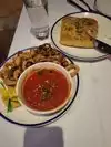 We popped into in after a Saturday matinee of Sweeney Todd. We didn’t have reservations but they managed to find us a table. We had a picky tween and a dieting teen with us but found things on the menu to make everyone happy. I will describe the food below but the best part was our waiter. He was hilarious. I know it is a bit but it made the meal fun in addition to tasty. We had the garlic loaf, mozzarella stick (yes stick and hopefully you get the slightly raunchy joke to go with your order), calamari, ravioli and carbonara. I also got the mock tail version of their Six tie-in called The Queen’s Cup. All the food was delicious and the service was wonderful and entertaining. Bonus - it was close enough to the stage door that my teen was able to pop out after he ordered and get an autograph. We would definitely eat there again before or after a show.