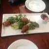 The crowed was not in yet at 6 pm Saturday evening. There is an inside seating and kind of outside covered/ in closed patios eating ,we chose the second one. The Decor is simple and practical, nothing fancy, but odd painting of Skeleton figures on the walls! The Menu was kind of different, and we were not sure what to order, so we asked our waiter Frank to suggest a couple of dishes to us. They did not sound very good, so we chose one appetizer and asked to surprise us with two more, he selected the pulled Pork Dumplings and the Spring Rolls , we selected the Tuna Tacos.the Tacos were kind of salty but tasty if you like salty, the Dumplings were very yummy with a great coleslaw , but it should not have been put in the same dish.the Spring rolls were very tasty too. We also ordered the Southwest Quinoa salad, which was kind of Bla and had very little flavor to it, so we ended up blending the Coleslaw from the Pulled Pork Dumplings dish to the salad which ended up giving it a nice zest the it was missing . There were the two of us, my lover and I and we could not finish them all. I did not have any drinks but she had a Whiskey Sour, but both of us ended up later in the night with heart burns ! Why? I don't know ! The over all taste was good, but the mix...? Or maybe our stomachs are just too sensitive. The bar area filled in a little later and the place was happening . Frank and his helper were very accommodating and served the food very fast. Don't forget to enjoy their Mini Corn bread cup cakes! Which they serve with the bread.