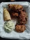 I've ate here a number of times, and even have a 5-star review of them for eating in with great ribs and brisket. I've always though they were a bit cheap on the sides (only one small side comes with a dinner plate) but usually there is some bread included at least, but today's really was over-priced and underwhelming. I ordered takeout and picked it up. Monday's they do fried chick special. I was pretty disappointed to get home and see what I'd paid $33 for (before a tip!). The chicken in my opinion was overcooked and brown rather than a golden. It tasted, 'okay' - it didn't have that juicy, salty moreishness that you associated with fried chickn and although it was meant to be 1/2 chicken it had to have been a tiny chicken. I took the coleslaw as my side and added on a corn with butter. I seriously, still can't believe the corn they give me for $5. $5!!!! $5!!!!!! for corn. At the least I'd have expected a full cob, but they give me what was barely 1/2 a cob and the tapered end at that. That's just theft for something that costs so little. I'll probably go back for ribs and brisket - but I do feel pretty aggrieved at having spent $33 on this and they've lost a lot of goodwill from me based on this meal.