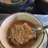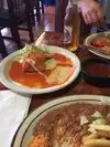 The "soup" was great. The pork was very tender and tasty h beans were really good also. The taco was good & tender but meat didn't have much flavor. The tamale & cheese enchilada for me was ok. Fun ambience also.