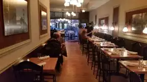 Had a barbecue chicken salad. Reasonably fresh, but overpriced for the portion side. Limited selection of wine, but the pinot grigio was served nice and cold. Service friendly, even for a couple of women who looked like we didn't really belong there.
