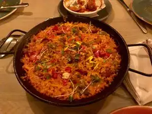 Clean, neat and expensive..... Good service. Did not have paella, but it looked good. Tomato soup too acidic. Cheese platter beautiful and very tasty. Mussels were excellent Brussels sprouts yummy. Potatoes too spicy for me. Sangria good.