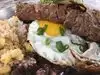 I had the Picanha Grelhada: medium-rare sirloin steak, rice, beans, caramelized onions, fried egg, biguinho peppers. 👌 I tried it in a food truck at SXSW. The presentation was great, the flavors even better. 😍
