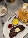 Great experience, atmosphere, people, and good. A must go place! Amazing service as well. Food is delicious and drinks are immaculate. Steak frites are pictured.