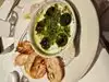 I chose spinach and avocado salad $14. Avocado was crunchy and not ripe sent it back. No ripe avocado available. Settled for cucumber cold soup. Meh. Tiny 4 0z portion maybe half a cup $12. Next mussels in white wine sauce for two of us. Mussels SO tiny I couldn't see them literally and half the shells were empty. Sauce- hey, where's the wine guys? Fries OK bit soggy. Husbands pork chop tough as an old boot. Friends husband had six escargot (snails). He said OK. But $16! 5 glasses of wine at $14 each. But OK. Total $268 with tip. Don't go. Just don't. Try Bella Blu same block instead.