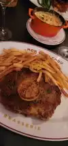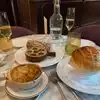 Meet friends for dinner, first time here for all of us. Thoroughly enjoyed it! Started off with the SANDWICH AU FROMAGE RACLETTE, the cheese was excellent as was the bread! The ESCARGOTS DE BOURGOGNE À L’ ANCIENNE were very nice and more wonderful bread! Two of use had the CORDON BLEU DE VEAU, one had the bouillabaisse special, loaded with clams, scallops monk fish, etc and we had a Ribeye. All dishes wee excellent. We finished off with the MOCHA POT DE CRÈME, CARAMEL SEL DE MER, CRÈME CHANTILLY dessert. Great wine also. The Manager, Brian also stopped by several times o see that all was going fine. We will be back!