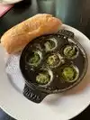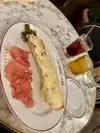 This is a great French restaurant. They have an extensive menu with so many items that sounded wonderful. We had the most amazing lunch. We opted for shareables. We had the escargot (yummy, right amount of garlic), the charcuterie platter and added three cheeses. My husband added the pork special of the day and was delighted with it. We munched away while drinking champagne. Food was excellent as was the service and atmosphere. All the while we listened to french love songs and other classics. We are just sorry we found it on our last day in San Antonio or we would have gone back for dinner.