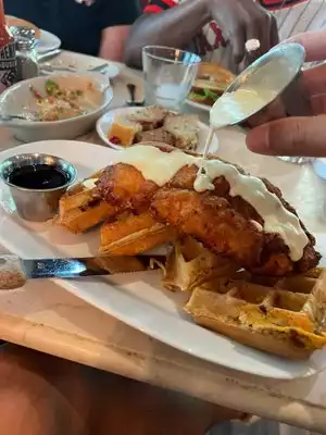 Only negative was the wait but WELL worth it. Absolutely fantastic--service, food, atmosphere. My first chicken and waffles,