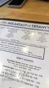 We saw the recent Tripadvisor reviews of this restaurant, and so went for a Groupon (two $20 certs for $29). Wow, are we glad we did! A super breakfast. We drove a few minutes to get to Tiffany’s on a Tuesday morning. Parking seemed difficult at first as we cruised the neighborhood, but at about 8:15 AM we saw a couple of empty metered spots and pulled into one of them. Since the meters don’t need to be fed until 9 AM, it was great timing (when we finished breakfast at 9 AM, the area was swarming with pedestrians and parking looked to be very difficult). There were several empty tables when we went in, so we were seated immediately. The table service was fast and friendly. I ordered the Western Omelet. Wow. It was packed with ham, sautéed veggies, and cheese. Simply huge - - One of the best Denver Omelets I have ever had, and I couldn’t eat it all! My wife had the eggs benedict, and they were great. The hollandaise makes the benedict – and Tiffany’s had real, tasty hollandaise. Tiffany’s also prides itself on the its hash browns, and these were also very good, although I generally prefer them crispy and the Tiffany’s cooks them up a bit mushy. We went back again on Friday. Street parking was the same – easy to get at 8:20 AM, and free until 9 AM. We ordered almost the same thing: eggs benedict for my wife, and a Denver Omelet for me (fewer veggies than the Western). Again, great food and service, and I still couldn’t eat the entire omelet. My wife and I both highly recommend Breakfast at Tiffany’s!
