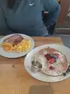 The eggs benedict is delicious and plenty for two. The oatmeal with fresh fruit was also delicious. Recommendable.