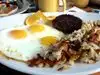 Excellent breakfast...big portions so be careful what you order. Not too greasy either considering it's basically a souped up breakfast diner...definitely worth it if you are hungry. Pick anything...it always tastes good.